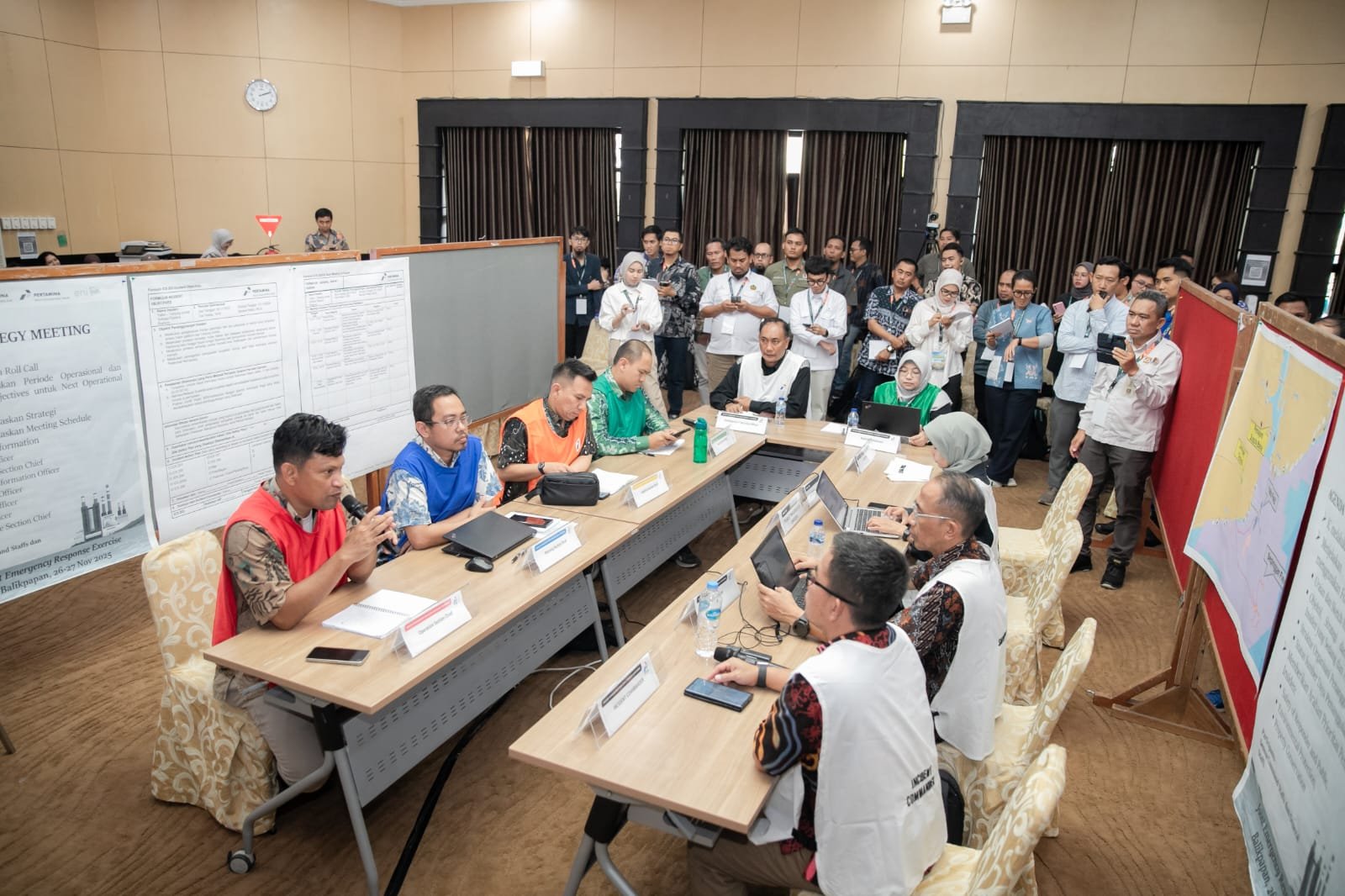 Salah satu sesi utama adalah table-top drill, simulasi yang dirancang mendekati skenario nyata insiden migas.