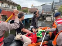 Sigap di Tengah Banjir, Tim SAR Brimob Evakuasi Warga Priuk Damai
