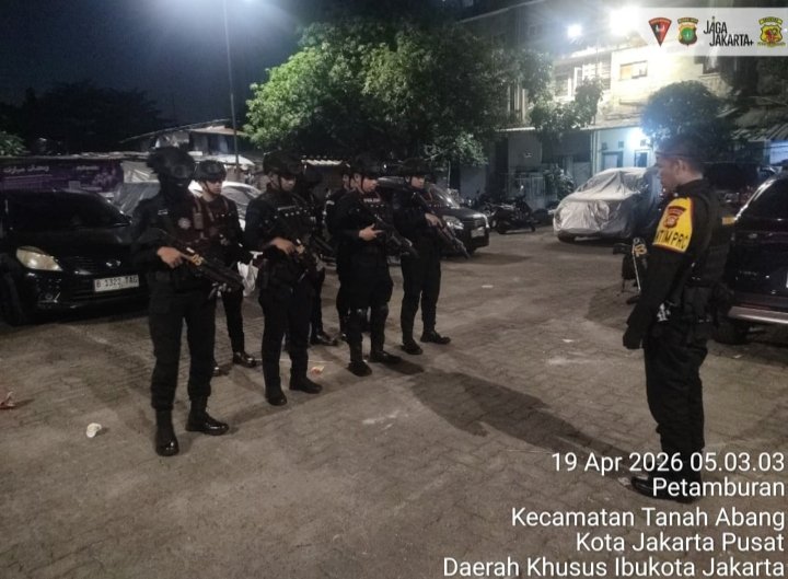Jakarta – Batalyon A Pelopor Satuan Brimob Polda Metro Jaya melaksanakan patroli di kawasan Tanah Abang, Jakarta Pusat, dalam rangka mengantisipasi potensi gangguan kamtibmas dan tawuran warga, Minggu (19/4/2026) malam. Kegiatan ini difokuskan pada pemantauan titik-titik rawan serta memastikan situasi di lingkungan permukiman tetap aman dan terkendali.