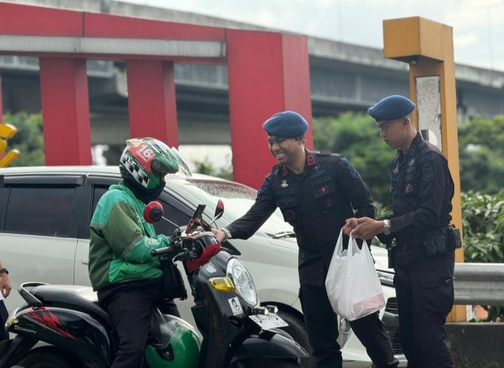 Memasuki pukul 16.35 WIB, personel Batalyon D Pelopor bersama Aliansi Ormas Bekasi mulai membagikan takjil kepada masyarakat yang melintas di kawasan tersebut, khususnya para pengendara dan warga yang masih berada di perjalanan menjelang waktu berbuka puasa.
