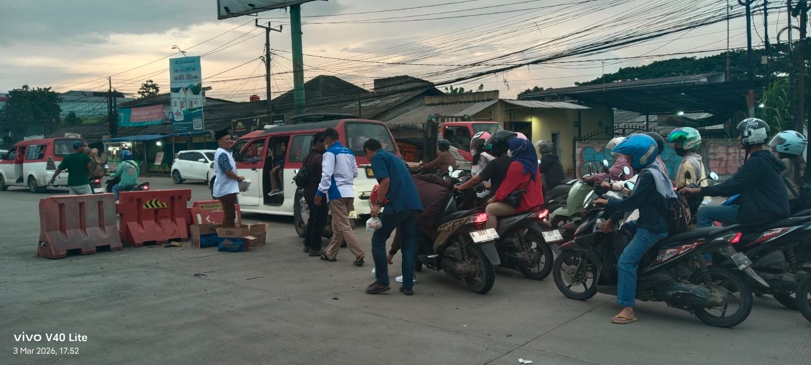 Ratusan takjil dibagikan kepada pengendara roda dua dan empat yang pulang dari kerja atau mungkin lagi ngabuburit bersama anak atau istri.