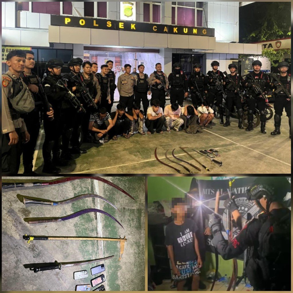 Adapun barang bukti yang diamankan antara lain tiga buah celurit, satu buah parang, satu buah senjata tajam jenis samurai, serta lima unit telepon genggam. Seluruh terduga pelaku beserta barang bukti selanjutnya diamankan dan diserahkan ke Polsek Cakung, Jakarta Timur, guna proses pemeriksaan dan penanganan lebih lanjut.