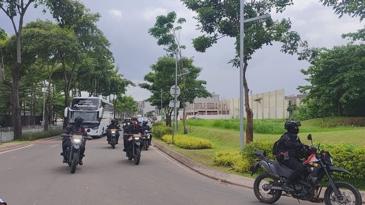 Tangerang — Satuan Brimob Polda Metro Jaya melaksanakan kegiatan pengamanan dan pengawalan Tim Borneo FC menuju Stadion Indomilk Arena, Kabupaten Tangerang, dalam rangka pertandingan Liga 1 melawan Persita, Jumat (9/1/2026). Kegiatan ini dilaksanakan oleh Tim Patroli Brimob Batalyon C Pelopor guna memastikan keamanan dan kelancaran seluruh rangkaian pertandingan.