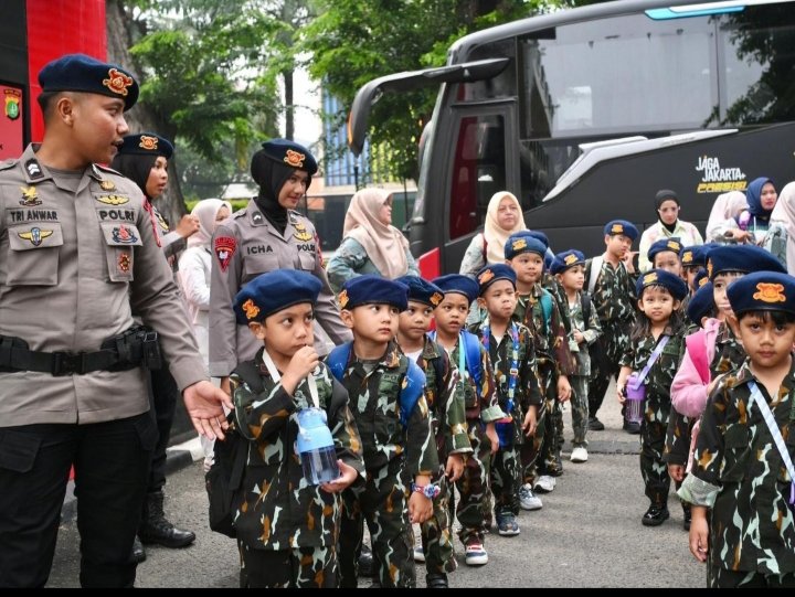 Jakarta – Batalyon A Pelopor Brimob Polda Metro Jaya menerima kunjungan edukasi dari siswa-siswi TK Kemala Bhayangkari 17 di Mako Batalyon A Pelopor pada Kamis (23/4/2026). Kegiatan ini bertujuan mengenalkan tugas serta lingkungan kepolisian kepada anak sejak dini.
