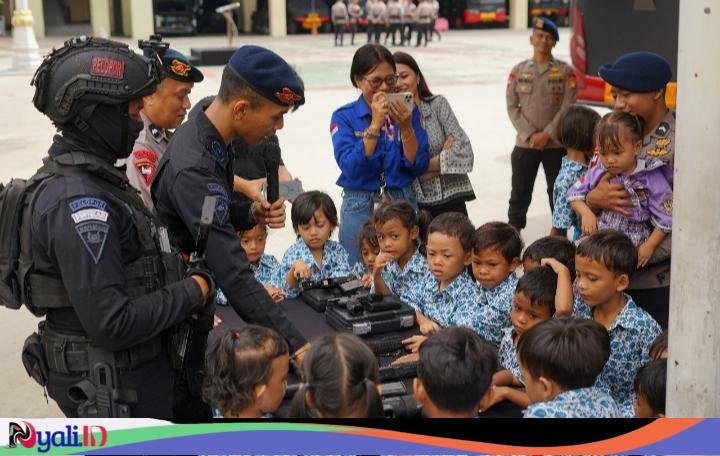 Anak-anak tampak antusias saat diperkenalkan berbagai jenis seragam Brimob, alat khusus (Alsus), hingga kendaraan taktis (rantis) dan KR-2 oleh para personel.Suasana semakin meriah ketika para murid diberi kesempatan untuk memegang langsung perlengkapan Brimob, seperti tameng sekat, serta mencoba mendorongnya dengan riang gembira.