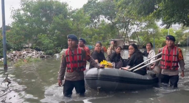 Jakarta — Tim SAR Batalyon C Pelopor Satbrimob Polda Metro Jaya kembali menunjukkan kesiapsiagaannya dengan mengevakuasi warga terdampak banjir di Puri Kartika, Pondok Kacang, Jumat (23/1/2026). Kehadiran Brimob memastikan penduduk dapat berlindung di tempat aman dengan cepat dan tertib.