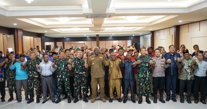 Timika – Dandim 1710/Mimika, Letkol Inf M. Slamet Wijaya, S. Sos., M. Han., M.A., menghadiri Rapat Forum Koordinasi Pimpinan Daerah (Forkopimda) bersama Tokoh Masyarakat, Tokoh Agama, Tokoh Perempuan, dan Tokoh Pemuda di Kabupaten Mimika. Rapat yang berlangsung di Hotel 66 Cendrawasih ini dipimpin Bupati Kabupaten Mimika, Johannes Rettob, S. Sos. M.M., bertujuan menyikapi perkembangan terkini di wilayah Kabupaten Mimika dan memperkuat sinergitas antar instansi dalam menjaga keamanan dan ketertiban wilayah. Selasa (02/9/2025).
