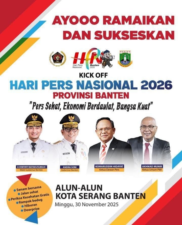 Serang – Warga Serang dan sekitarnya diundang untuk meramaikan launching atau Kick Off Hari Pers Nasional (HPN) 2026 yang akan dipusatkan di Alun-alun Kota Serang pada Minggu pagi (30/11/2025).