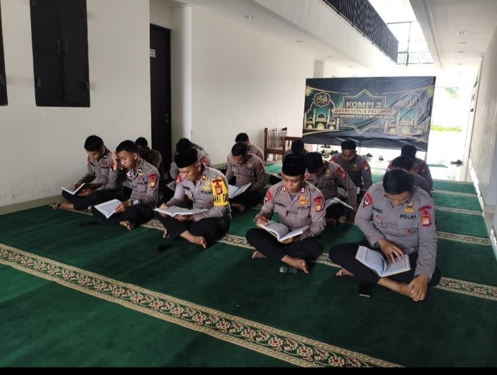 Jakarta — Personel Kompi 2 Batalyon A Pelopor Satbrimob Polda Metro Jaya yang tergabung dalam Siap 1 menggelar tadarus Al-Qur’an melalui Zoom Meeting di Lantai 1 Asrama Batalyon A Pelopor, Rabu (4/3/2026). Agenda tersebut menjadi bagian dari pembinaan rohani selama Ramadan 1447 H dengan pembacaan Juz 14, mulai Surah Al-Hijr ayat 1 hingga Surah An-Nahl ayat 128. Kegiatan ini konsisten dilaksanakan sebagai upaya memperkuat mental dan integritas anggota di tengah kesiapsiagaan operasional.