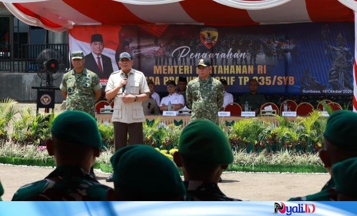 Sumbawa – Panglima Jenderal TNI Agus Subiyanto mendampingi Menteri Pertahanan RI Jenderal (Purn) Sjafrie Sjamsoeddin dalam kunjungan kerja ke Markas Sementara Yonif Teritorial Pembangunan (TP) 835/Samota Yudha Bhakti (SYB) di Kabupaten Sumbawa, Nusa Tenggara Barat, Sabtu (18/10/2025). Kunjungan ini bertujuan meninjau kesiapan satuan dalam mendukung pembangunan pertahanan wilayah serta memperkuat konsep pertahanan rakyat semesta yang memberi manfaat langsung bagi masyarakat.