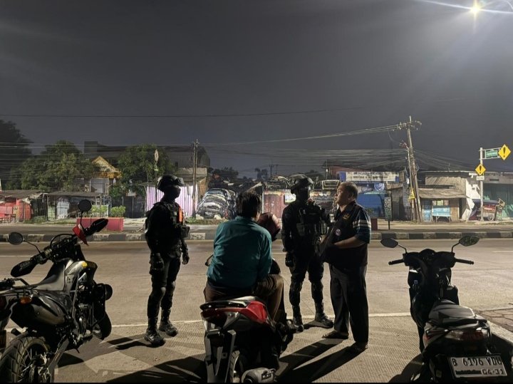 Bekasi — Batalyon D Pelopor SatBrimob Polda Metro Jaya meningkatkan patroli dini hari dengan menyisir sejumlah titik rawan di wilayah Kabupaten Bekasi, Rabu (22/4/2026). Langkah ini dilakukan sebagai upaya pencegahan terhadap potensi tawuran dan balap liar yang kerap muncul pada jam-jam rawan.