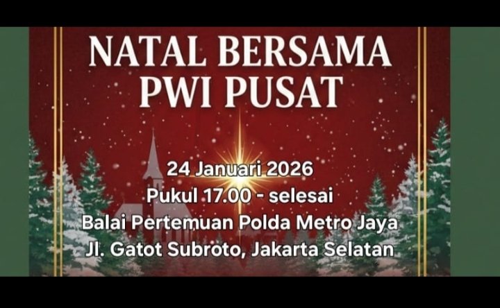 Jakarta – Persatuan Wartawan Indonesia (PWI) Pusat merencanakan penyelenggaraan Natal Bersama yang akan digelar pada Sabtu, 24 Januari, mulai pukul 17.00 WIB hingga selesai, bertempat di Balai Pertemuan Polda Metro Jaya, Jalan Gatot Subroto, Jakarta Selatan.