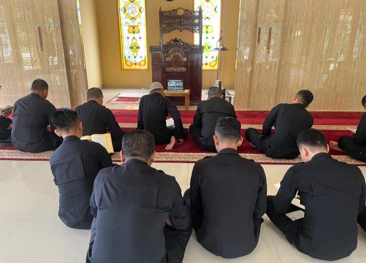 Pembacaan Al-Qur’an berlangsung khidmat dengan melantunkan Juz ke-16 yang meliputi Surat Al-Kahfi ayat 75–110, Surat Maryam ayat 1–98, serta Surat Taha ayat 1–135. Suasana religius di masjid satuan mencerminkan semangat personel dalam memperkuat keimanan sekaligus menjaga ketenangan batin di tengah tugas kepolisian.
