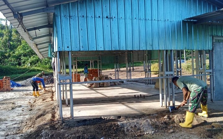 Aktivitas di lapangan dimulai sejak pagi. Cuaca cerah semakin menambah semangat para prajurit dan masyarakat dalam menyelesaikan target pekerjaan agar selesai tepat waktu dan hasilnya maksimal.