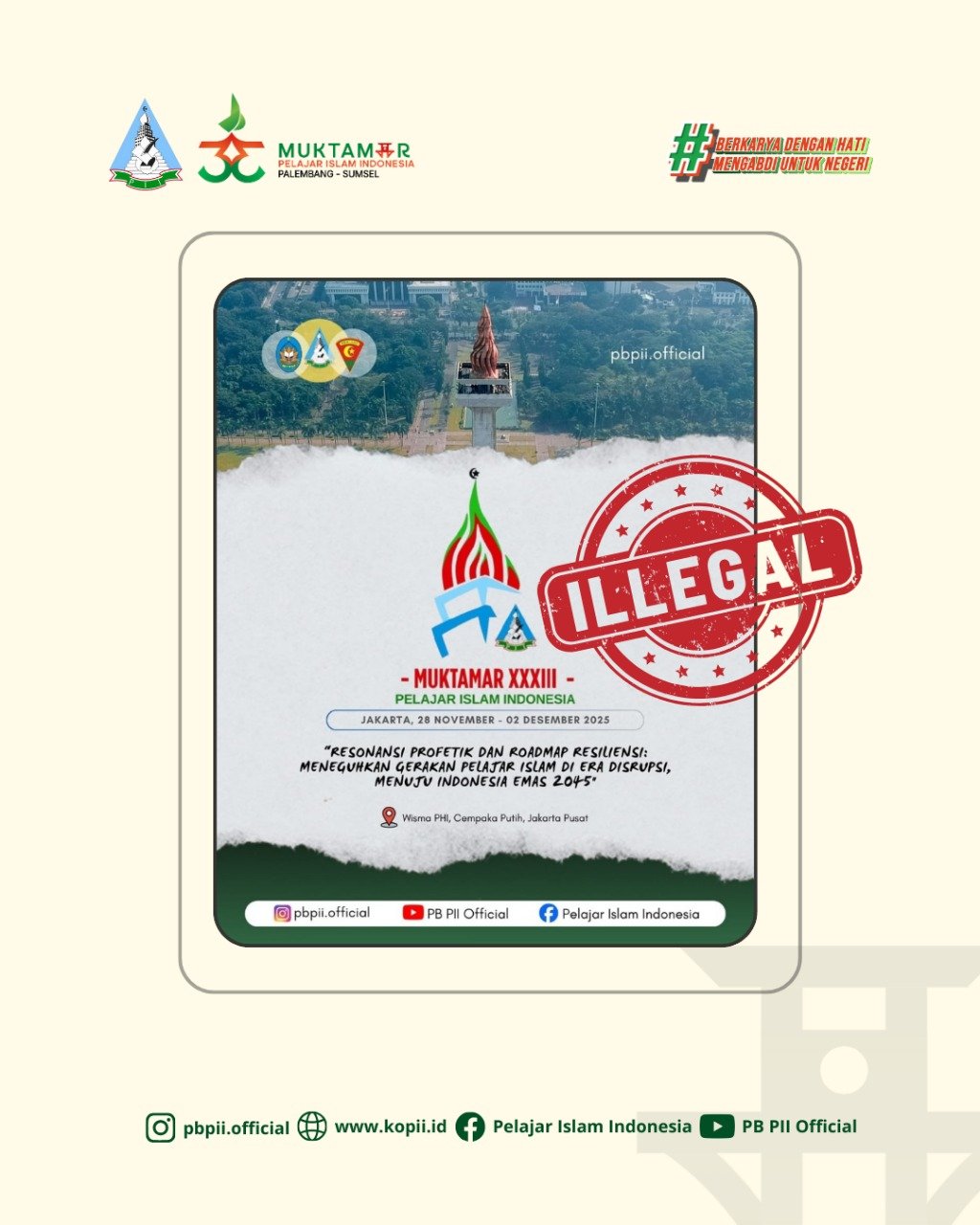 Atas dasar cacat prosedur, materi yang tidak matang, serta pelanggaran hierarki organisasi oleh badan ad hoc, PB PII menginstruksikan seluruh Pengurus Wilayah (PW) dan Pengurus Daerah (PD) untuk tidak melegitimasi forum ilegal tersebut. PB PII menegaskan bahwa penyelamatan organisasi dari praktik-praktik instan dan pemaksaan kehendak adalah prioritas utama saat ini. (*)