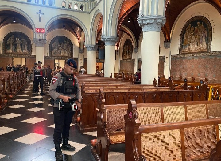 Jakarta — Dalam rangka mendukung kelancaran dan keamanan perayaan Natal pada Operasi Lilin Jaya 2025, Satuan Brimob Polda Metro Jaya melalui Unit Jibom dan KBR Detasemen Gegana bersama Unit K9 melaksanakan kegiatan sterilisasi di Gereja Katedral, Jakarta Pusat, Selasa (23/12/2025).