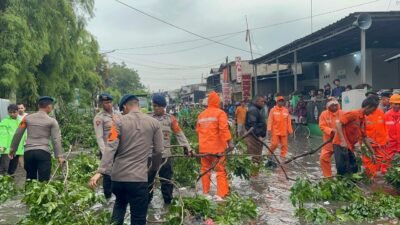 Jakarta – Akses jalan di wilayah Tanjung Priok, Jakarta Utara, kembali dibuka setelah Tim SAR Batalyon B Pelopor Satbrimob Polda Metro Jaya mengevakuasi sebuah pohon besar yang tumbang. Pohon tersebut roboh akibat hujan deras disertai angin kencang yang melanda sejak Minggu (11/1) malam.