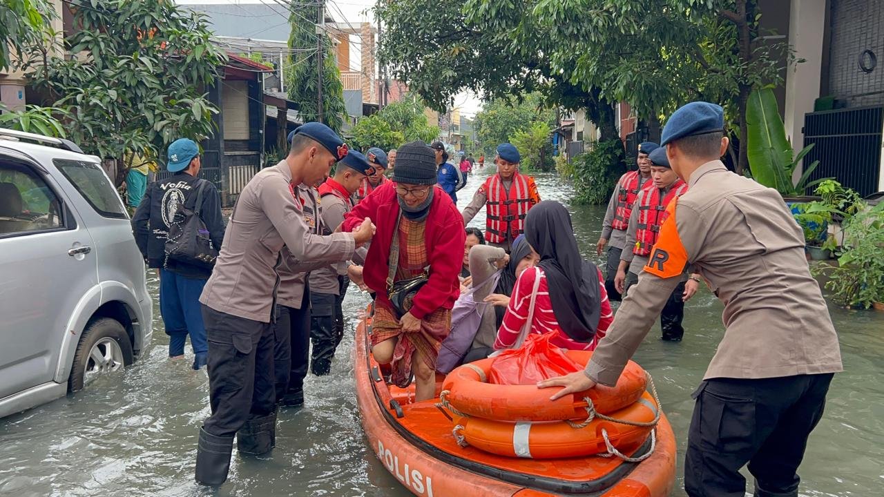 Genangan air terpantau mencapai ketinggian sekitar satu meter. Tim SAR Brimob bergerak cepat mengevakuasi warga ke lokasi aman di Kantor RT. Seluruh rangkaian kegiatan berjalan aman, tertib, dan terkendali tanpa adanya korban jiwa.