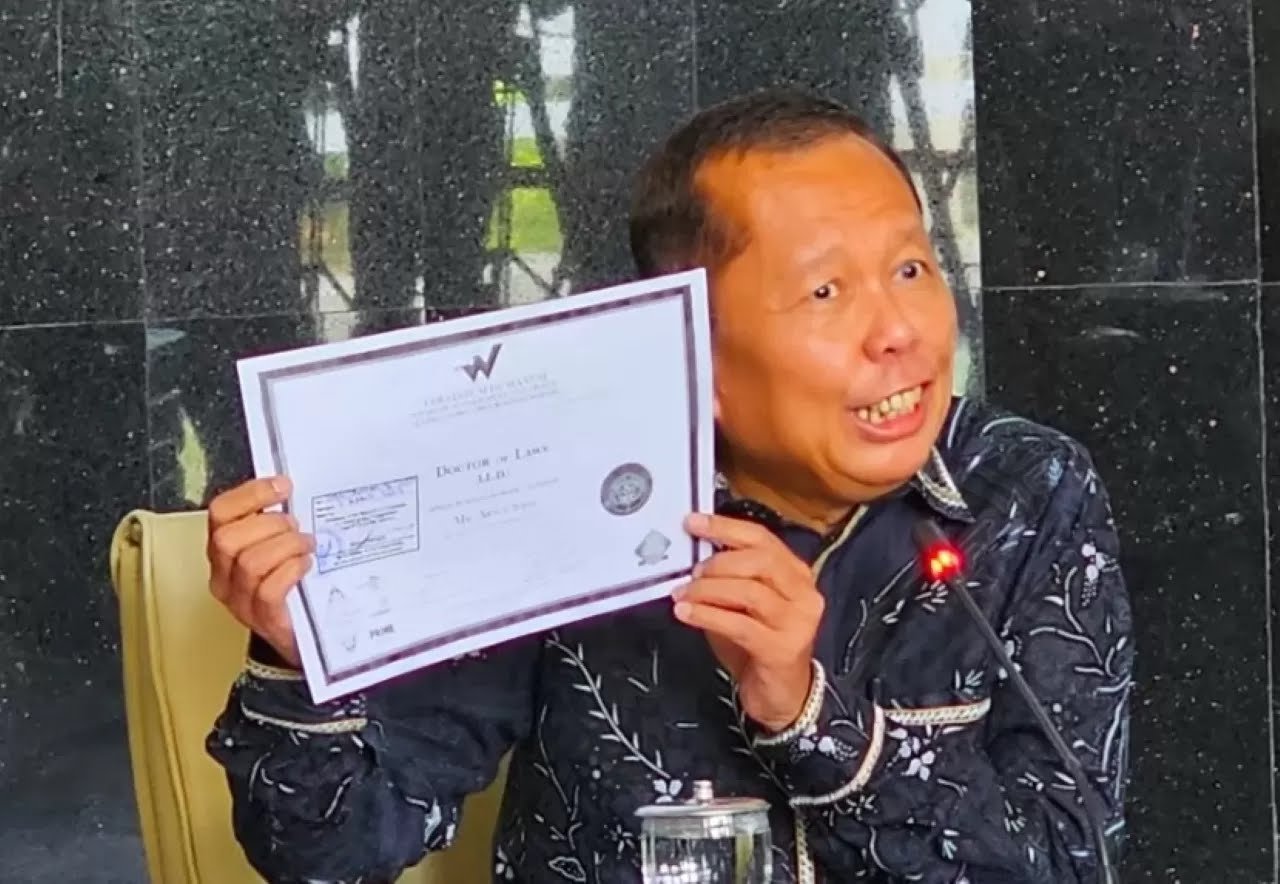Ia kemudian menunjukkan transkrip nilai yang diperolehnya sesama menempuh masa perkuliahan program doktoral di GCU.