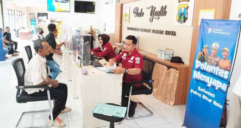 Blitar – Satuan Penyelenggara Administrasi Sementara (SATPAS) dan Sistem Administrasi Manunggal Satu Atap (SAMSAT) Satlantas Polres Blitar Kota hari ini kembali menggelar program “Polantas Menyapa” di lokasi pelayanan. Program ini secara aktif memberikan pendampingan dan edukasi langsung kepada para pemohon Surat Izin Mengemudi (SIM).