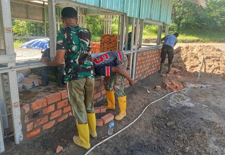 Sejak pagi, anggota Satgas TMMD bersama masyarakat setempat tampak bergotong royong mengangkat, menata, dan memasang batu bata dengan penuh semangat. Suasana kerja berlangsung akrab dan penuh kekeluargaan, mencerminkan semangat kebersamaan antara TNI dan warga dalam mewujudkan rumah ibadah yang layak dan kokoh untuk digunakan oleh jemaat.